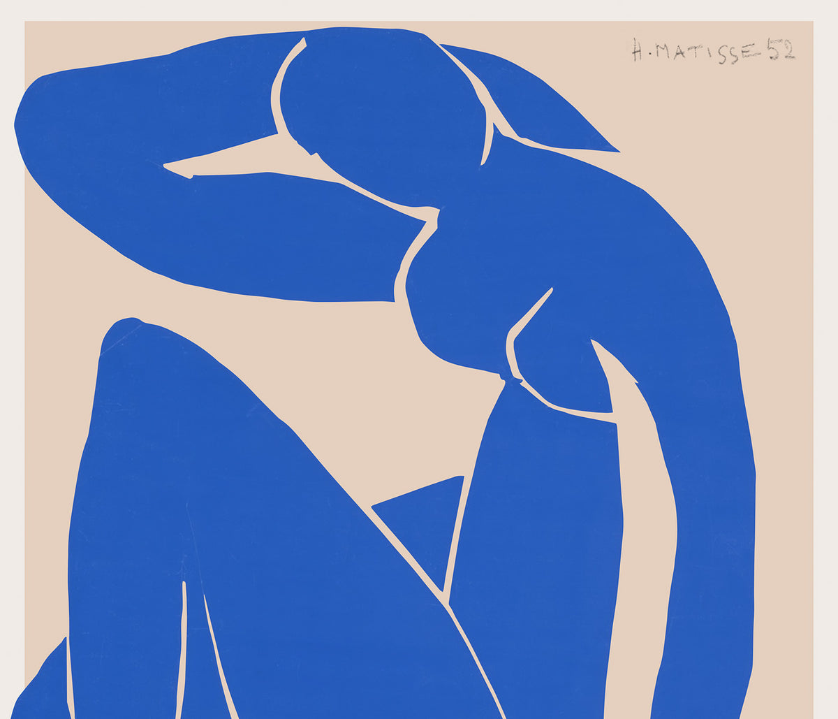 Henri Matisse · 1952 · Iconic blue nude poster in bold cut-paper shapes against a warm neutral ground