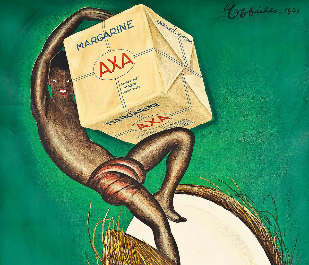 Leonetto Cappiello · 1931 · Pòster vibrant Margarine Axa amb figura impactant, fons verd i accents grocs