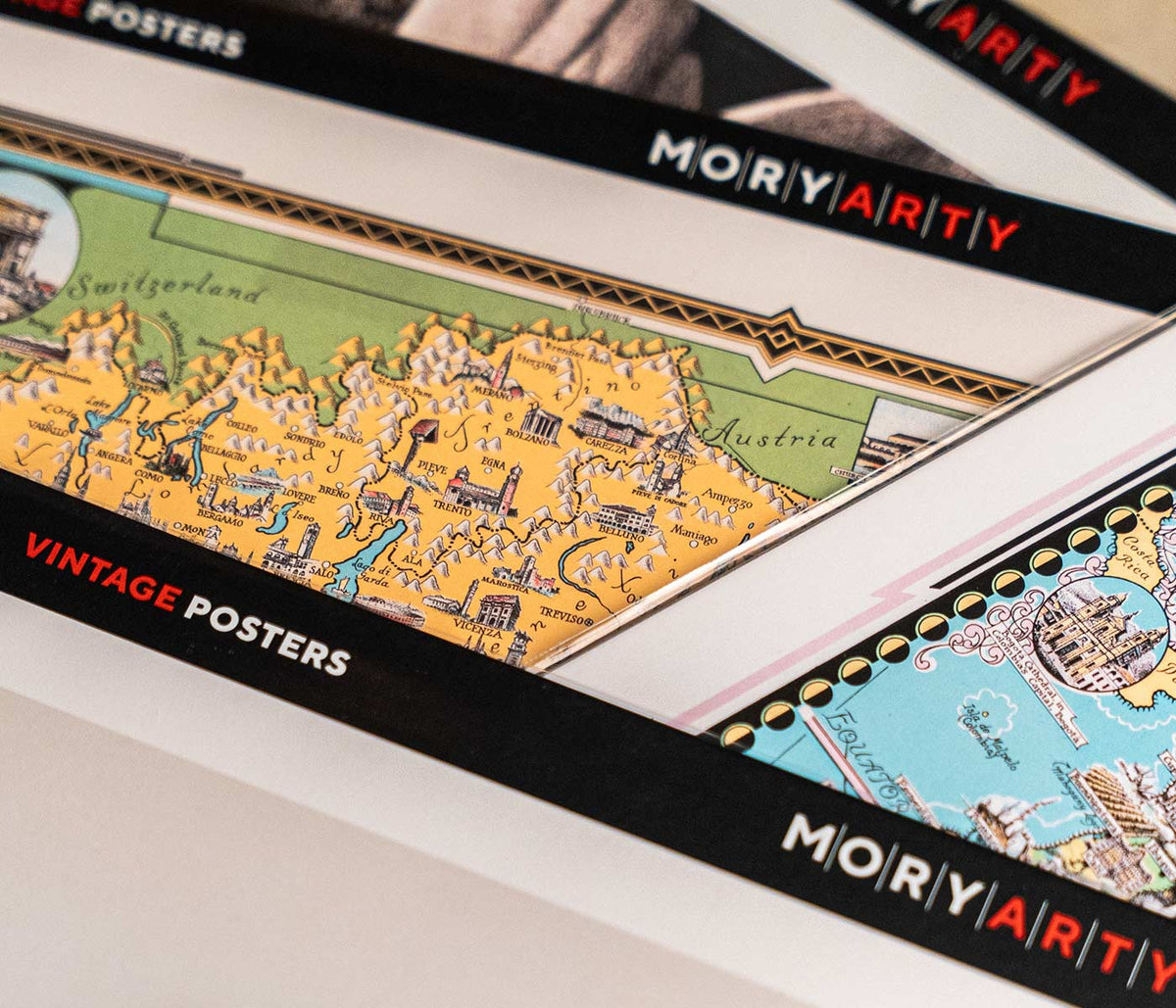 A curated collection of vintage advertising posters featuring classic brands and timeless...
