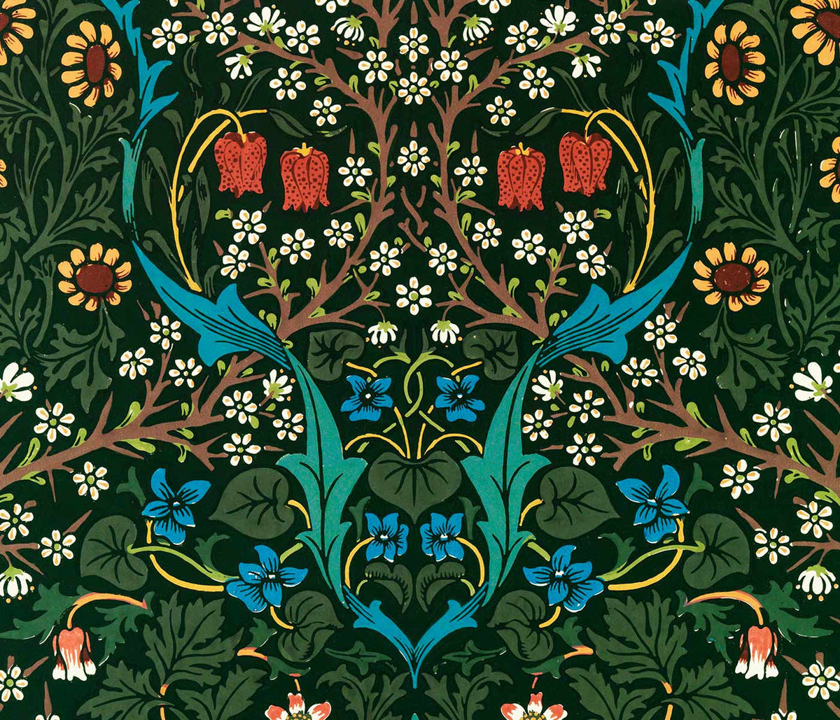 William Morris · 1882 · Arts and Crafts floral print in cool blue tones with lively botanical rhythm